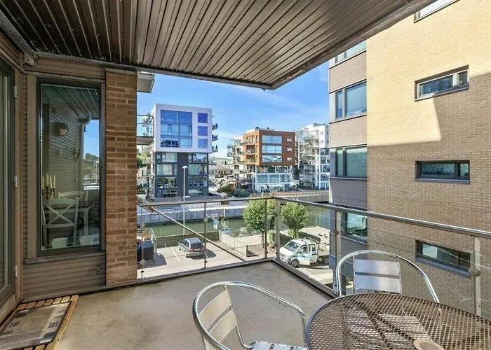 Frente a las montañas, este apartamento de 60 m^2, Kaldnes Brygge Tønsberg, acoje a los viajeros en una zona de playa, a 800 metros de Oseberg Kulturhus. Este apartamento, con una terraza con vistas al lago, está situado a un corto paseo de la Brygga i Tonsberg.